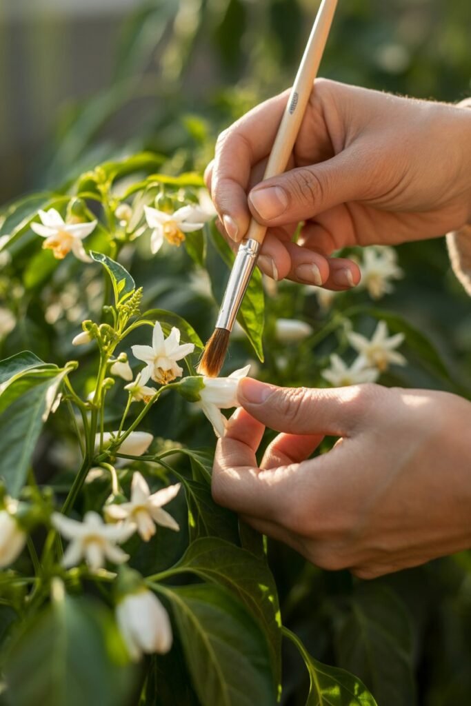 - Use a small paintbrush to move pollen between flowers