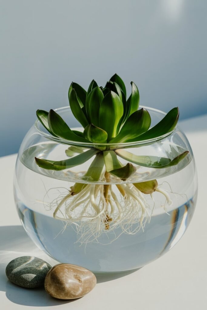 This plant instantly brings a tropical elegance indoors. Its bulb-like floating base and glossy leaves make any bowl look rich, lively, and absolutely stunning.