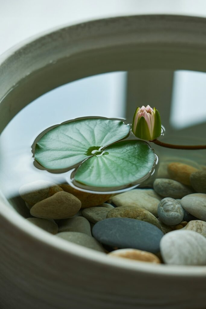 Whether you choose a tiny bowl of duckweed on your desk or a large, elegant water lily centerpiece, each plant adds its own calming presence to your space.