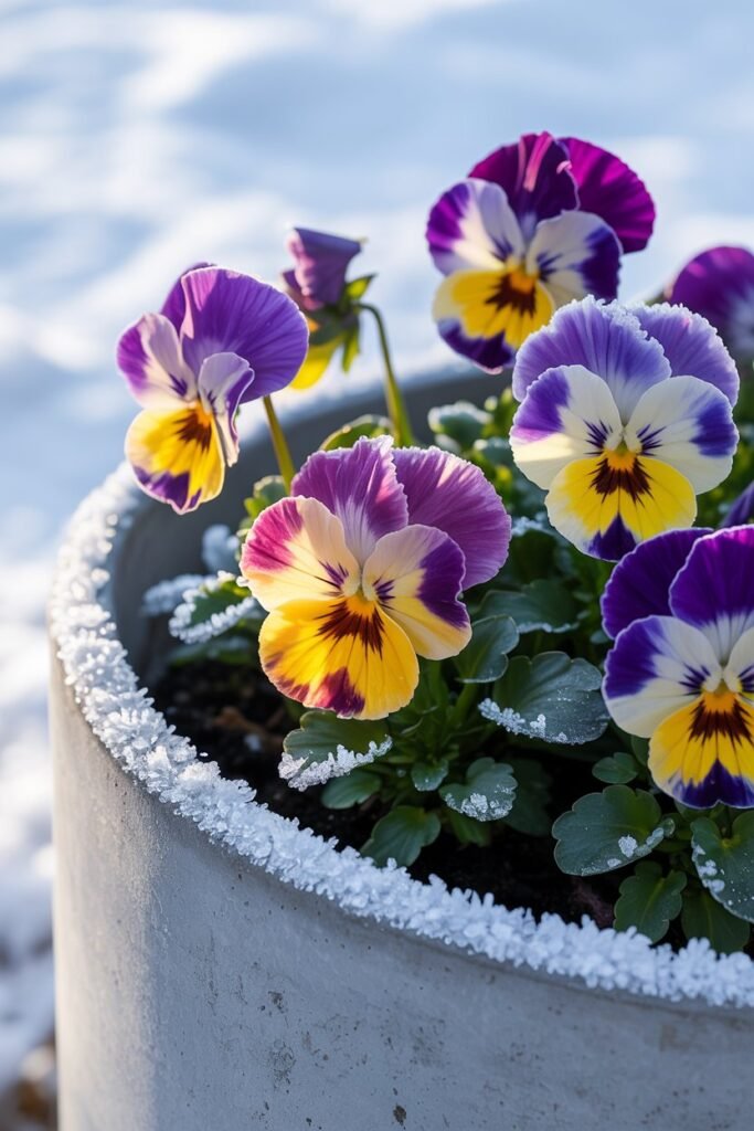 In many cold climates, pansies bloom straight through winter.
