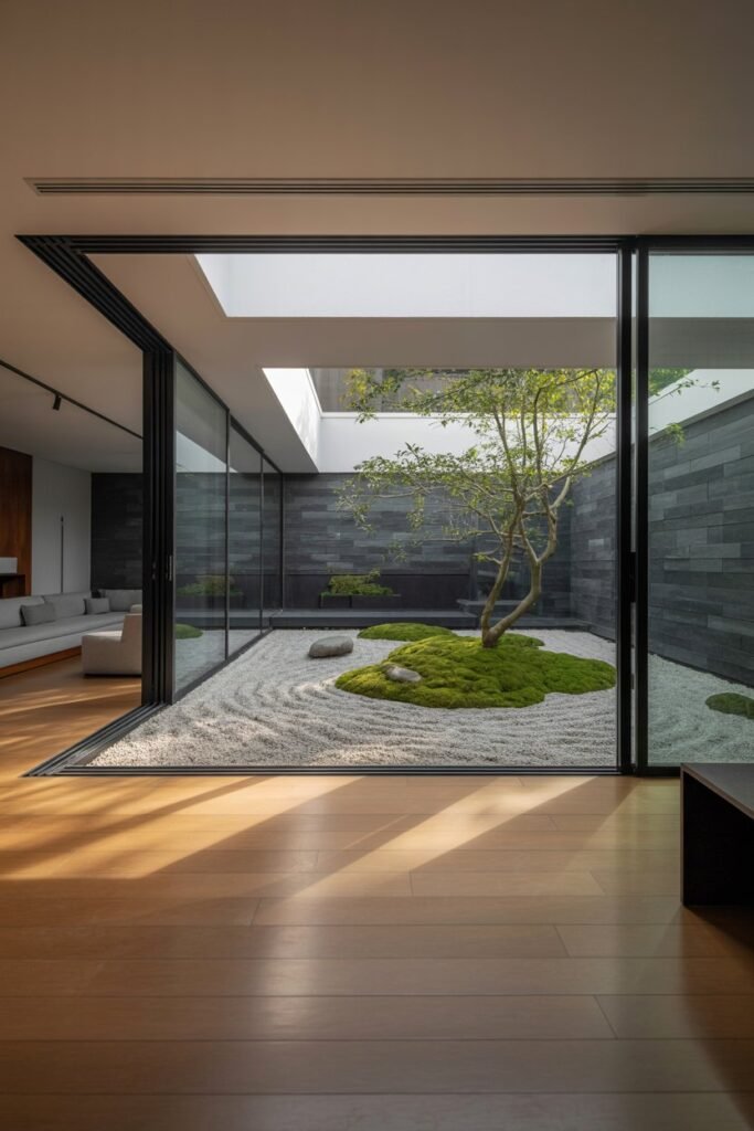 This Zen garden works best in small spaces, courtyards, or highly intentional homes.