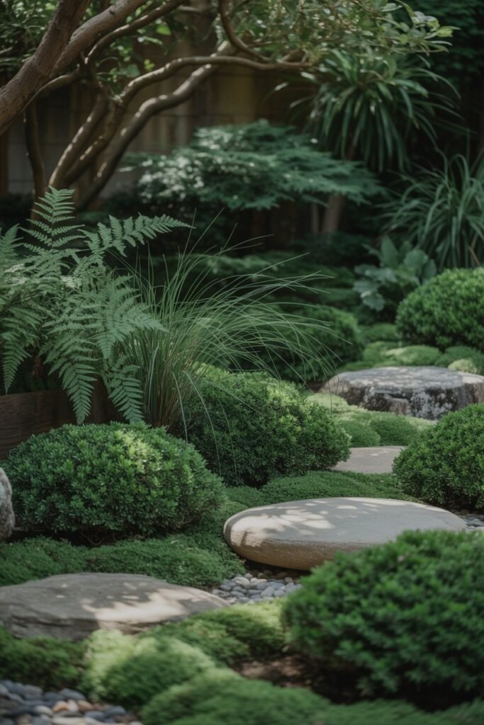 This Zen garden design is perfect for shaded yards, woodland gardens, or relaxing backyard spaces.