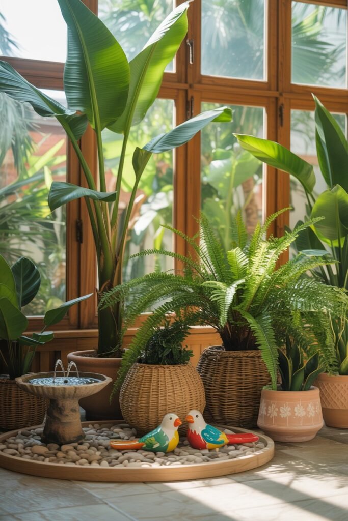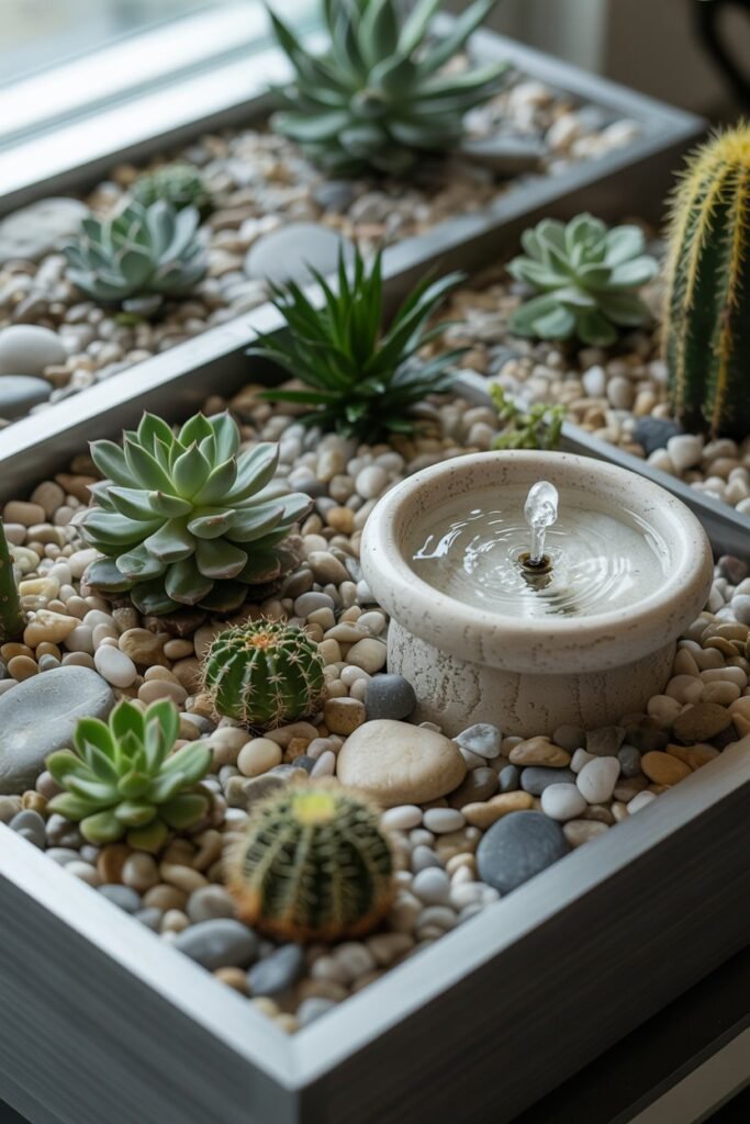- Water Feature: A small tabletop fountain adds gentle sound.