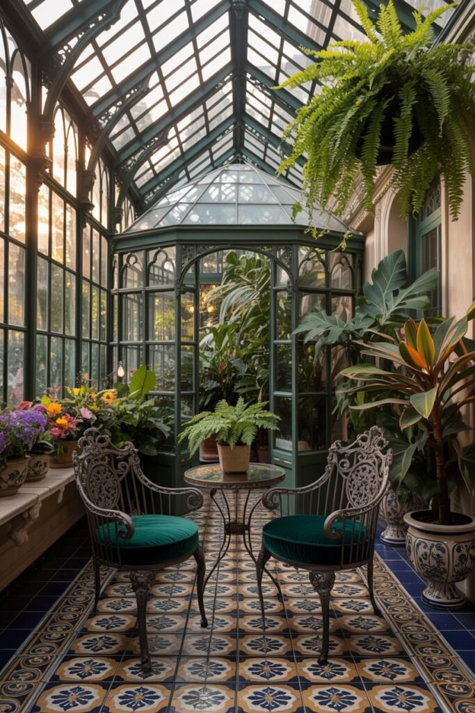 - Glass Enclosure: Small greenhouse-style or glass walls around the courtyard.
