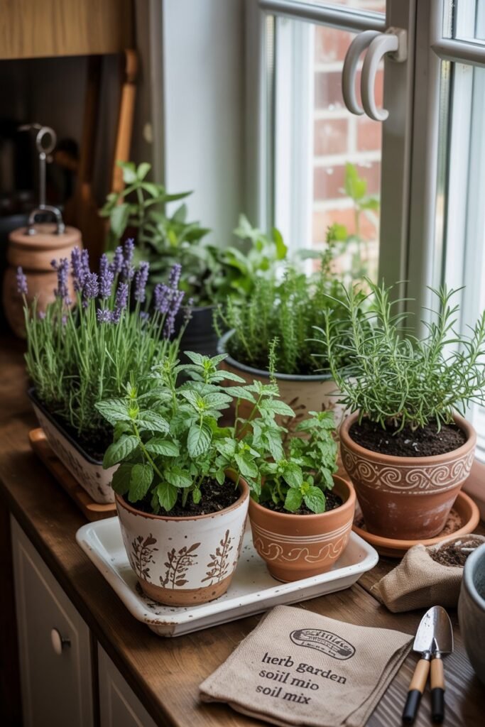 - Herb Pots: Small pots with basil, mint, rosemary, thyme.