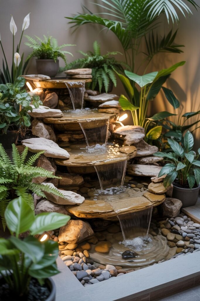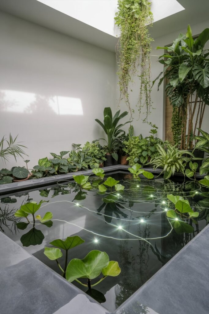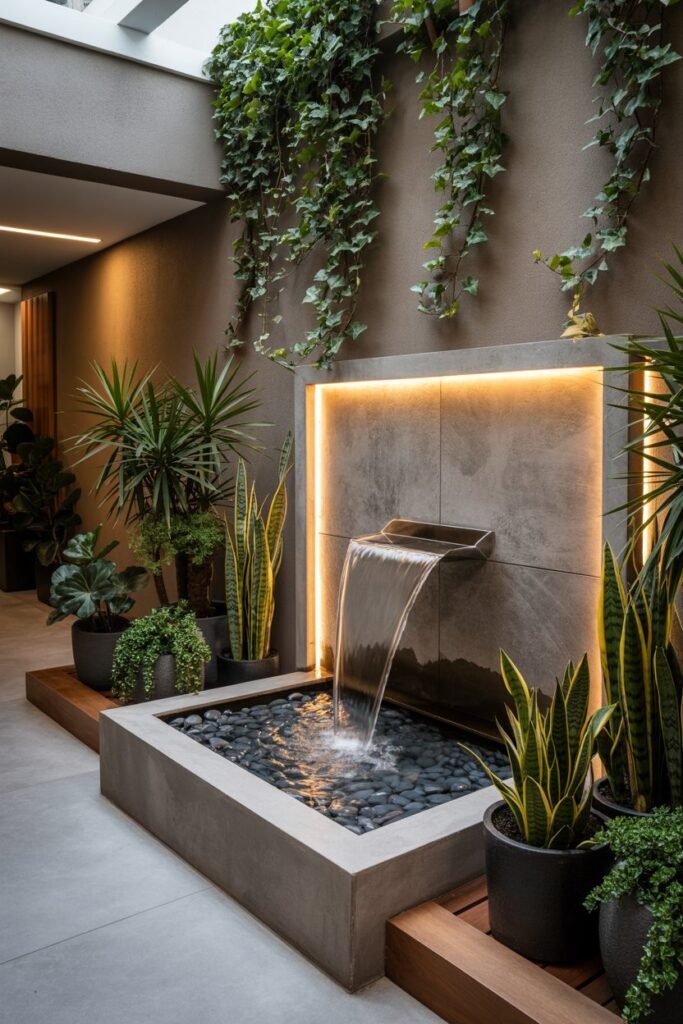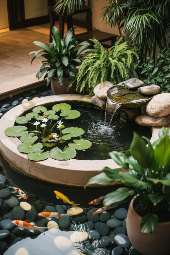 I adore the combination of pond and waterfall indoors—it’s both soothing and visually stunning. It’s perfect for meditation or creating a zen corner in larger spaces.