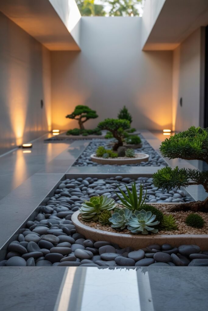 34. Indoor Courtyard with Minimalist Stones and Plants