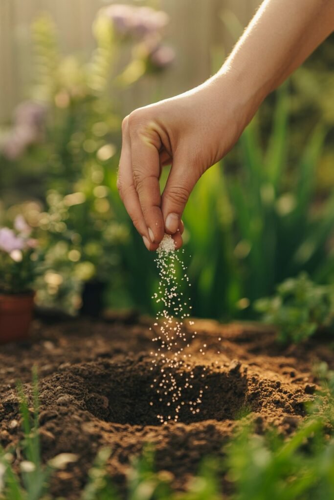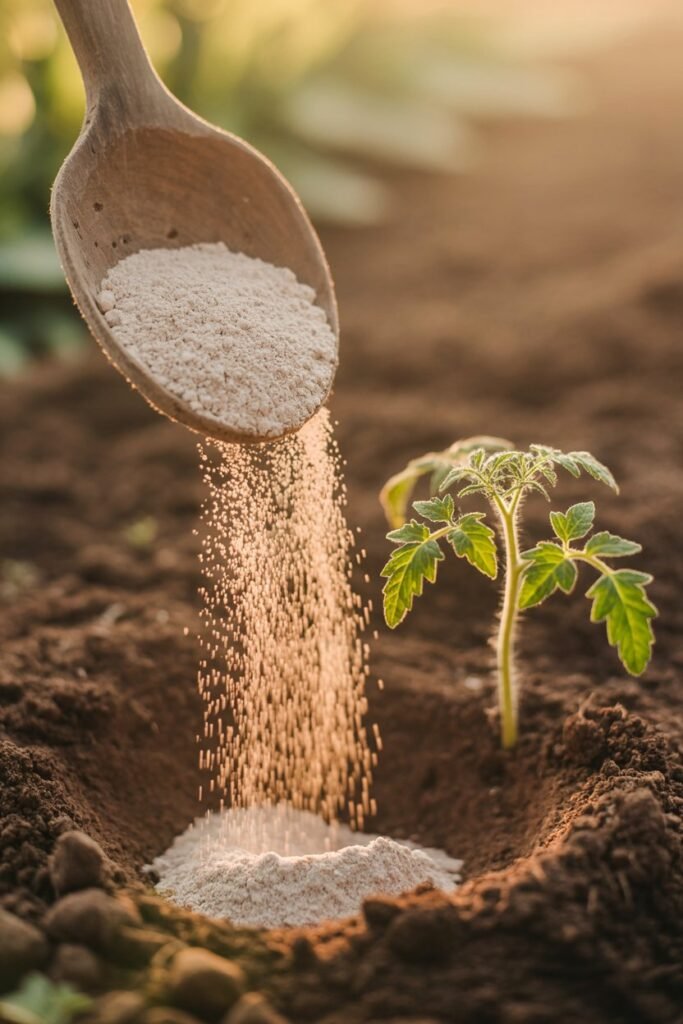 • 1–2 tablespoons of bone meal into the planting hole