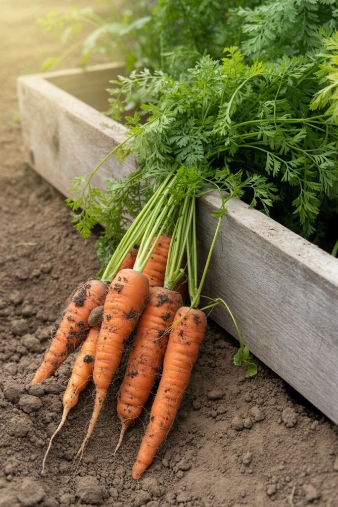 - Carrots: Several rows every few weeks