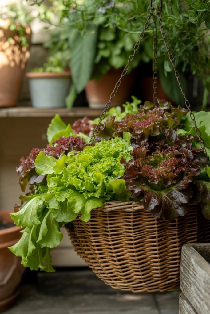 Lettuce is one of the most forgiving vegetables you can grow in hanging baskets, especially if you’re a beginner.