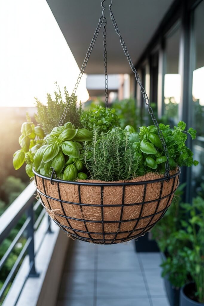 Attach a wire basket to a balcony or fence and insert coco liners.