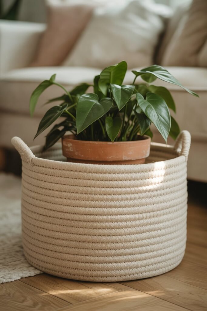 Insert a plastic liner inside a cute woven basket and add your plant pot. Perfect for living rooms.