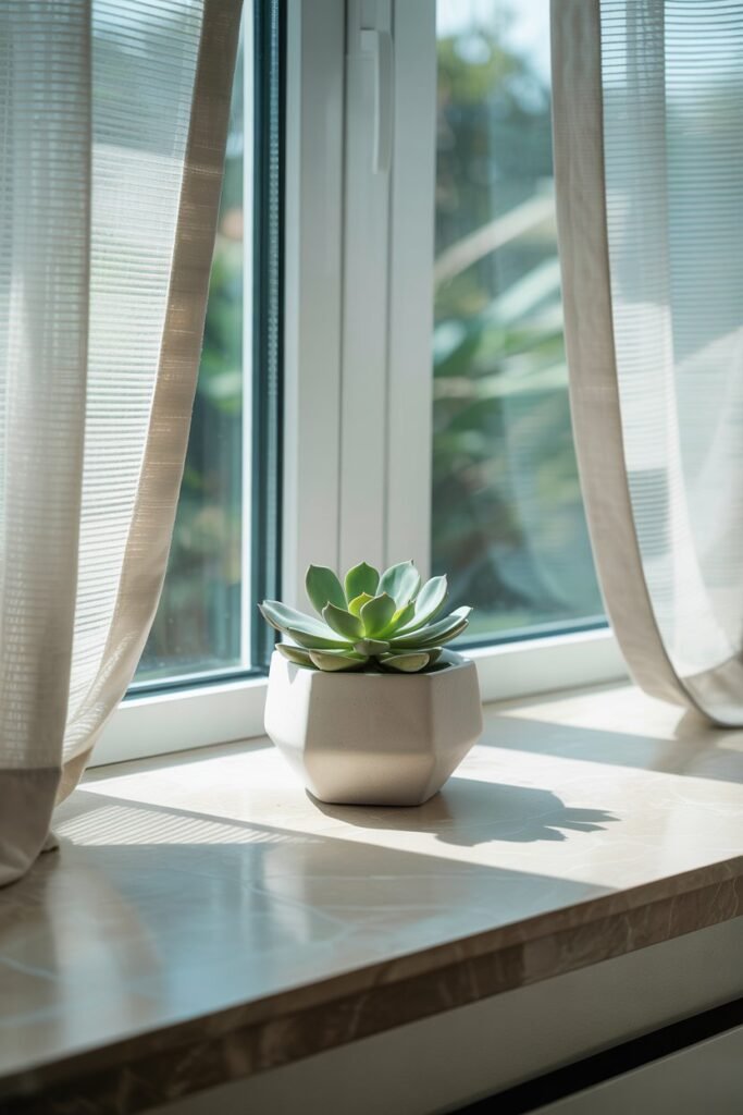 This spot is shockingly underrated. The side walls of a wide window frame (especially in kitchens or bedrooms) create a natural cozy nook where small plants thrive. The light bounces beautifully off the walls, which plants love.