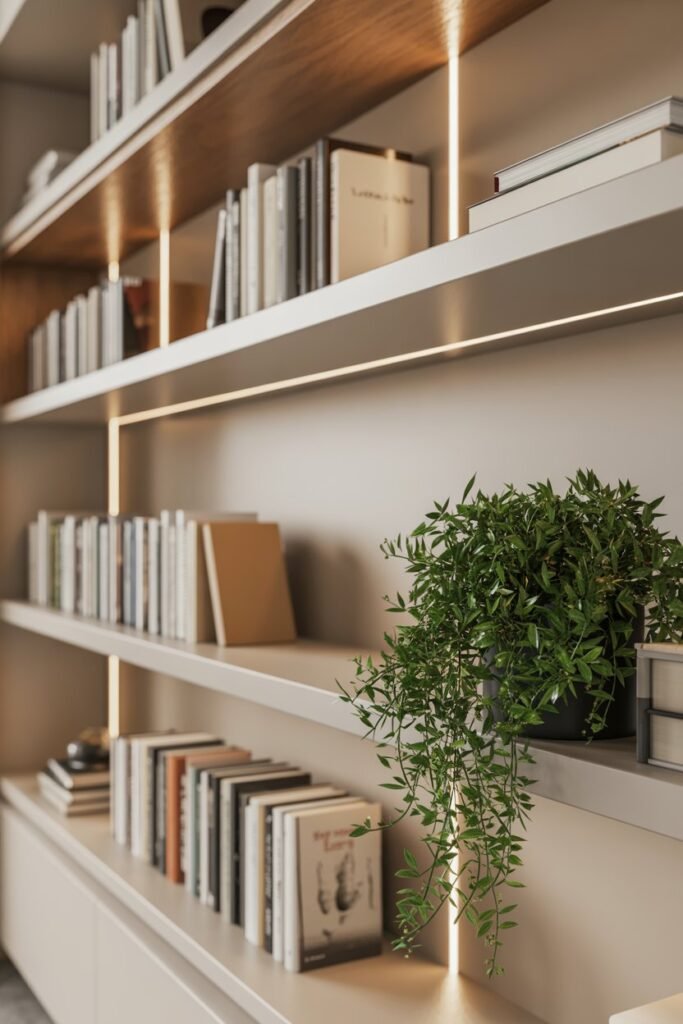 Not the front shelf where your books sit—the hidden upper back edge. It’s a magical spot for trailing plants because they cascade down visually without covering your books.