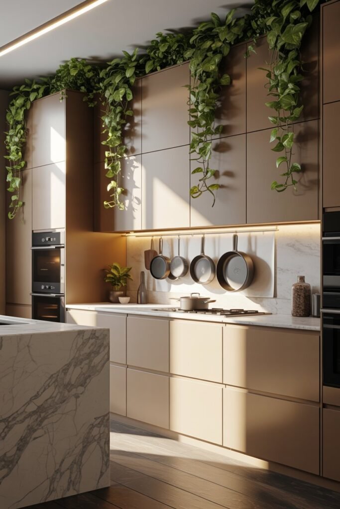 If your kitchen has that awkward gap between the cabinet tops and the ceiling, you’re sitting on prime plant real estate.