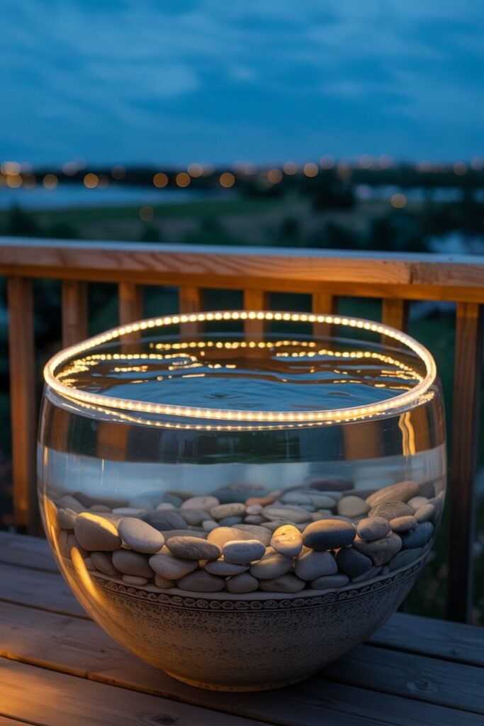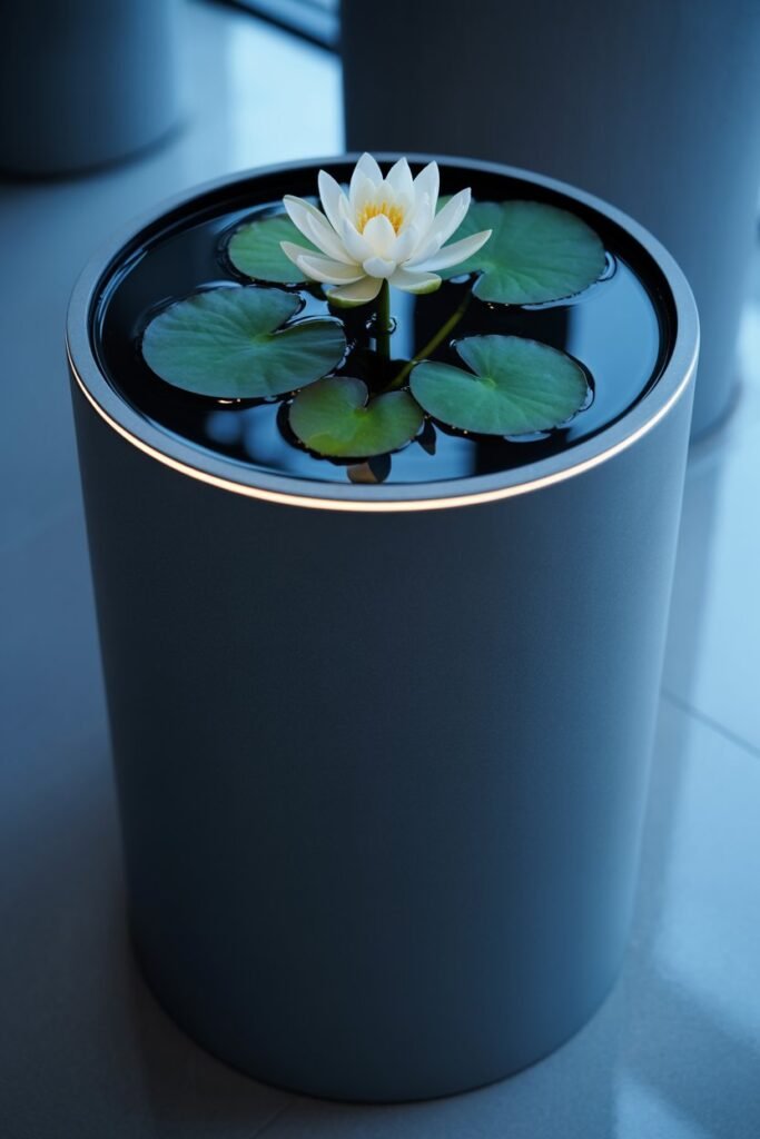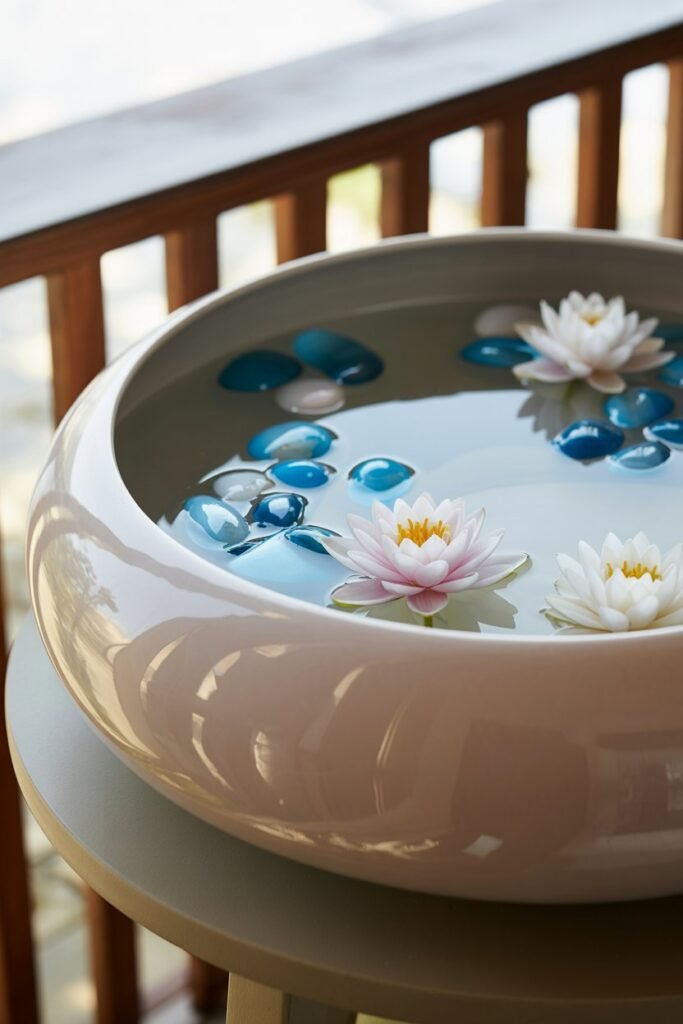Whether it’s a small barrel pond, a floating dish of lilies, a soft LED-lit bowl, or a tiny mason jar water garden, your balcony will instantly feel more soothing and alive.