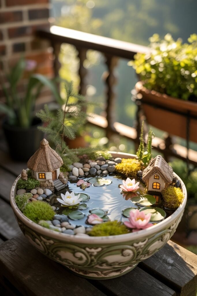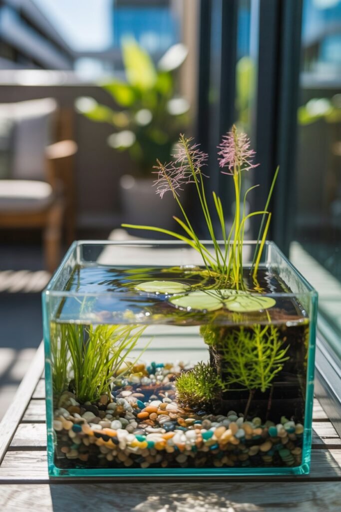 Creating a mini balcony pond doesn’t require a big space just the right container, a few affordable accessories, and a little creativity.