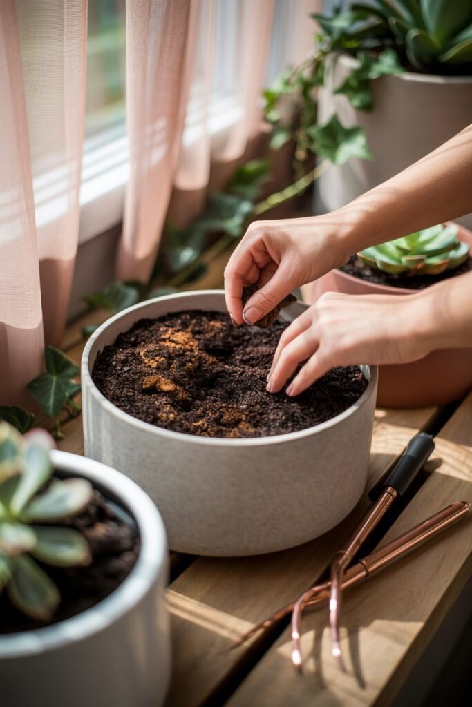 Why it works: Compost releases nutrients slowly, creating “living soil” full of beneficial microbes.