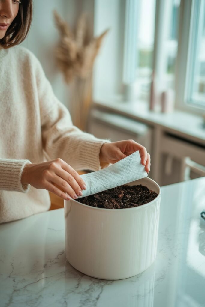 It’s easy to accidentally underwater or overwater. Lining pots with paper towels helps you actually see the moisture level by lifting the pot.