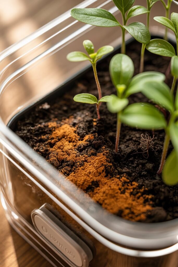 Cinnamon has natural antifungal properties, helping prevent damping-off disease in seedlings. It also encourages root growth when propagating cuttings.