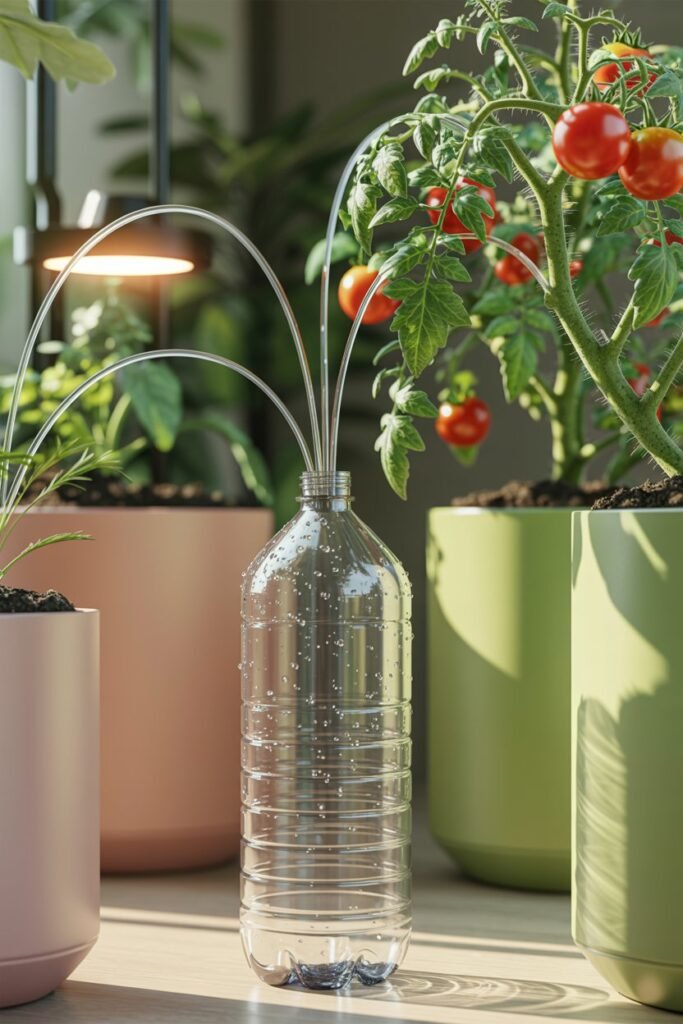 Plastic bottles can become drip irrigators, mini greenhouses, or watering funnels. This helps you repurpose waste while improving your plant care.