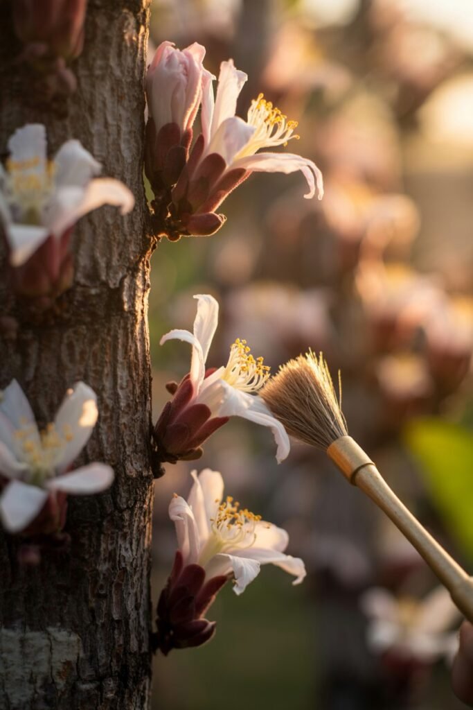 Cacao flowers are naturally pollinated by tiny insects in the wild. Indoors, you may need to hand-pollinate using a small brush.