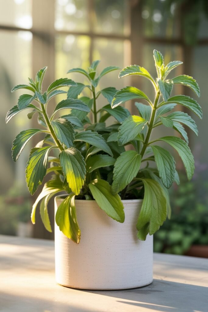 It loves warmth, rich soil, and regular moisture. In cooler regions, you can grow it in pots and overwinter it indoors. Stevia grows into a soft, bushy plant with tender, vibrant green leaves.