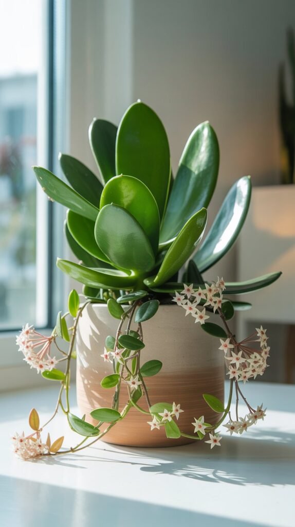 Its thick, water-filled leaves hold moisture and help balance dryness in your home while quietly filtering stale air.
