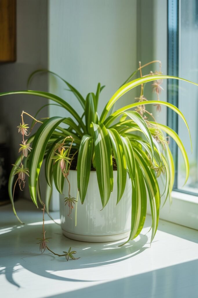 Spider plants naturally refresh stuffy rooms, especially older apartments, homes with carpets, or rooms that often feel “closed-in.”