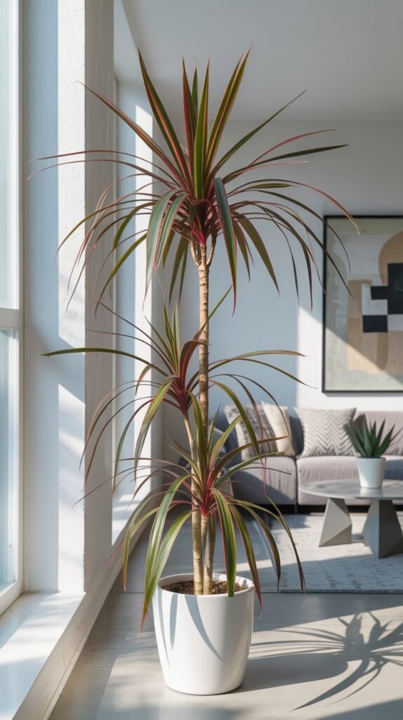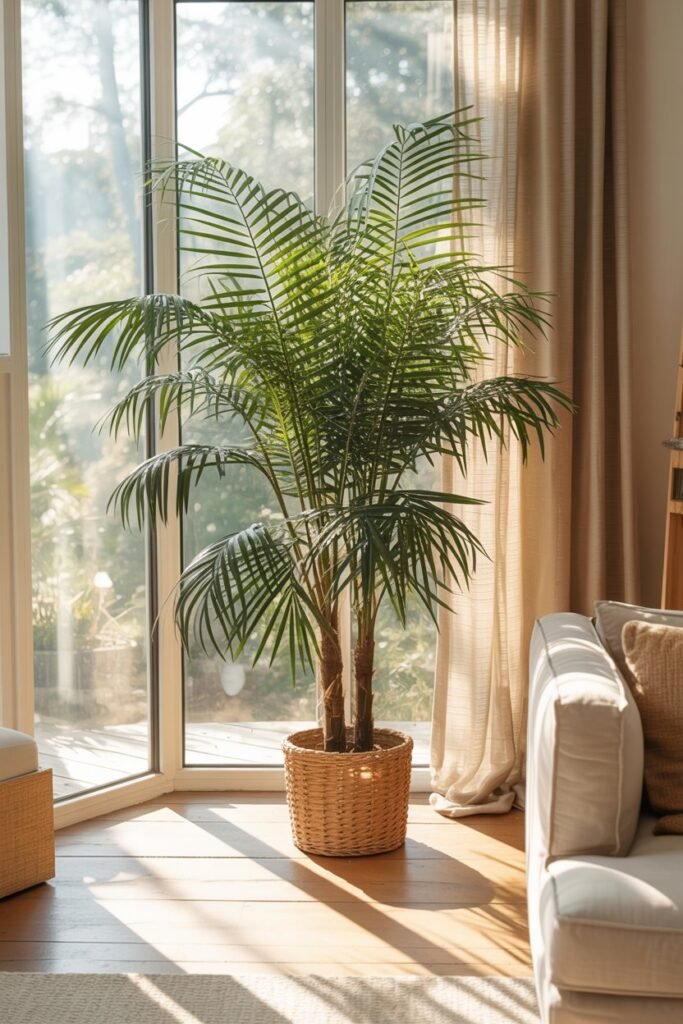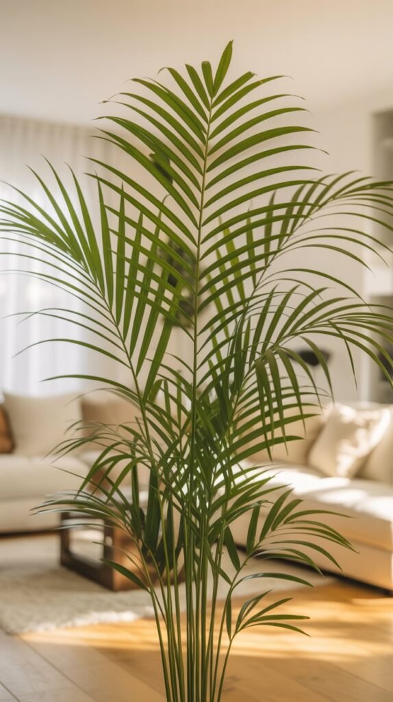 Its tall stems and soft fronds also help circulate air vertically, which improves the feel of larger rooms.
