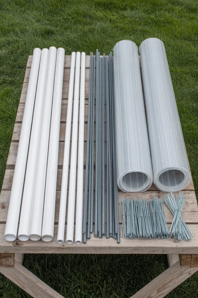PVC pipes are flexible enough to bend into arches but sturdy enough to handle wind and light snow. For beginners, ½-inch pipes are easier to work with and more budget-friendly.