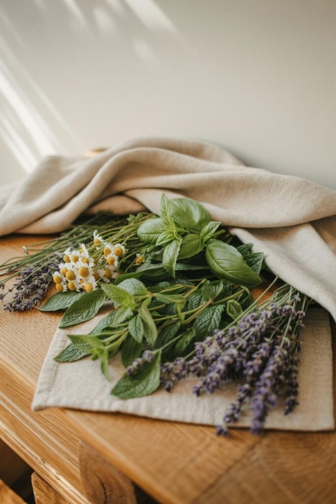 - Gather herbs into small, loose bundles (5–10 stems max).