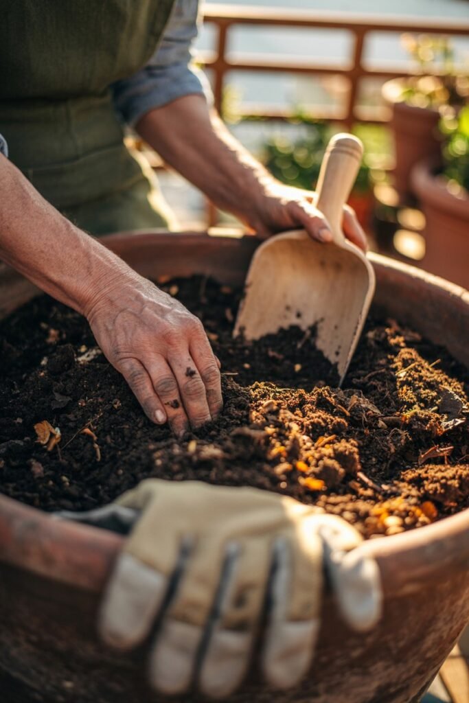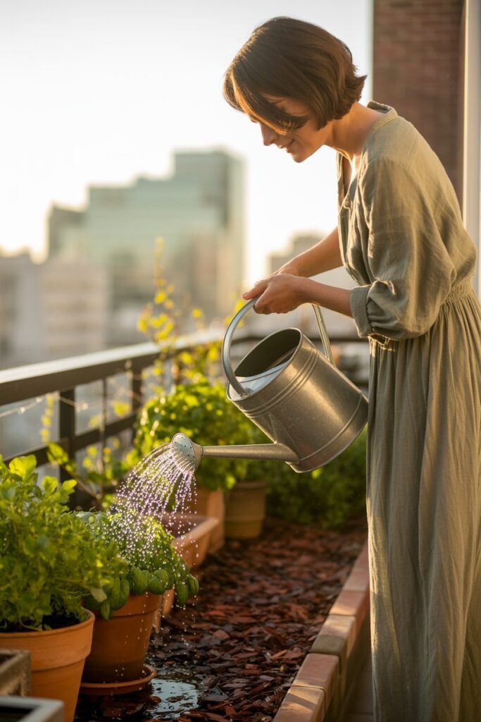 Mulch reduces evaporation by up to 50%. Even in balcony pots, a layer of straw or shredded leaves works beautifully.