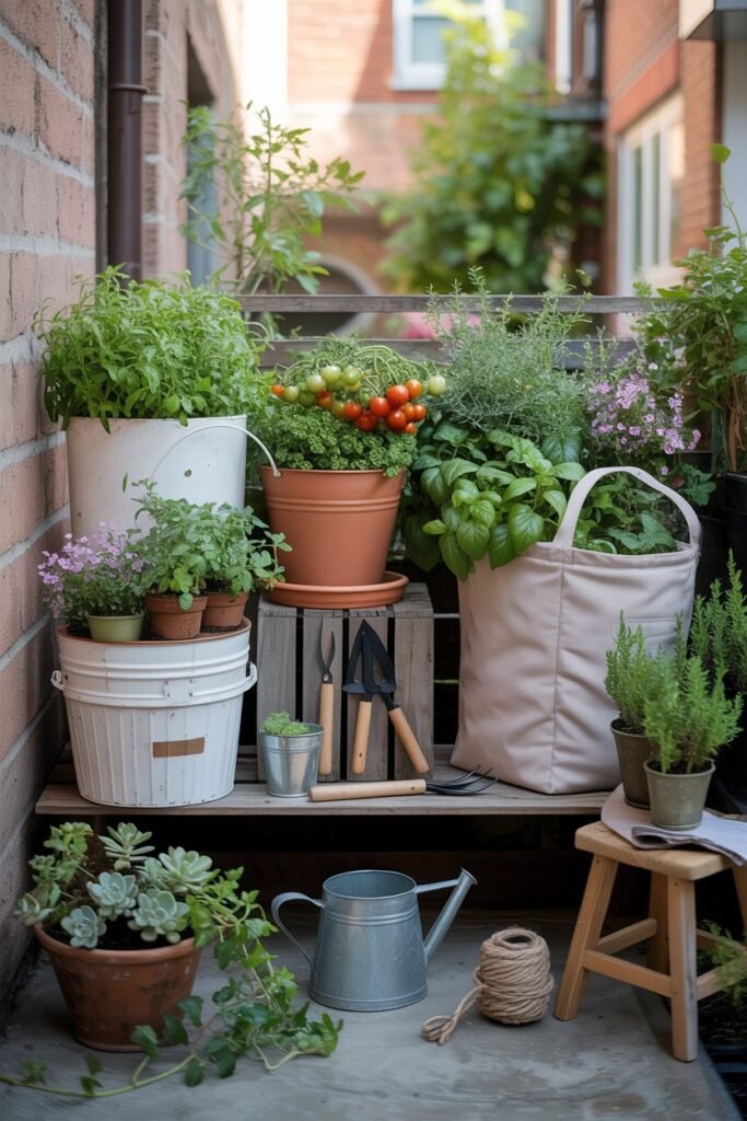 I had exactly three pots, a bag of soil I dragged up two flights of stairs, and a hopeful little tomato seedling that looked far braver than I felt.