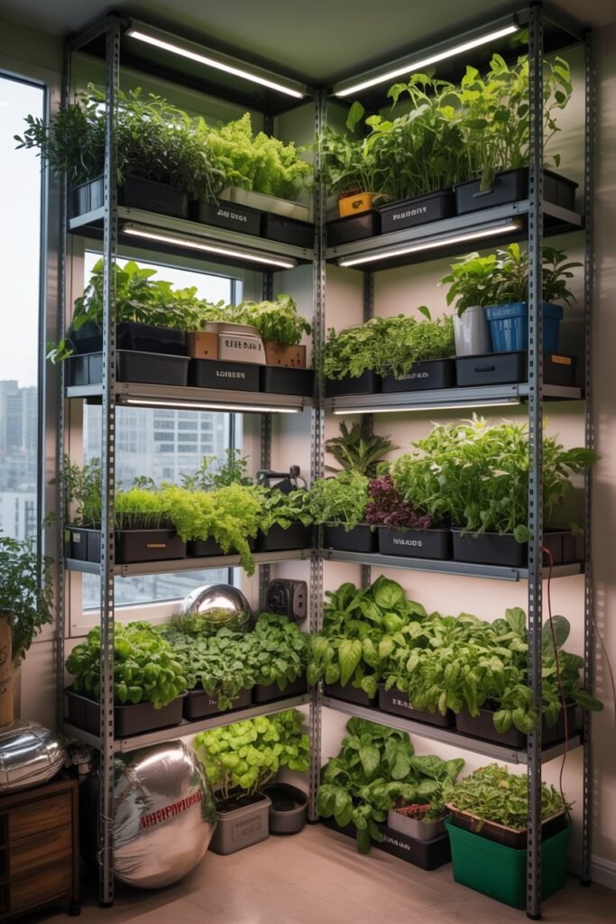 Survival Hack: I grow plants in layers, not just on floors. Shelving turns one square meter into a food-producing wall.