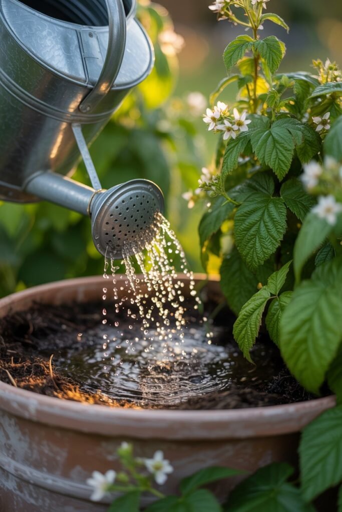 Watering Raspberries in Pots