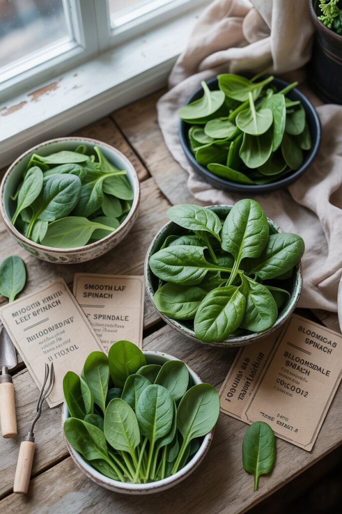 Not all spinach behaves the same way. Some varieties are more heat-tolerant. Others are perfect for baby leaf harvests. Choosing the right one makes everything easier.
