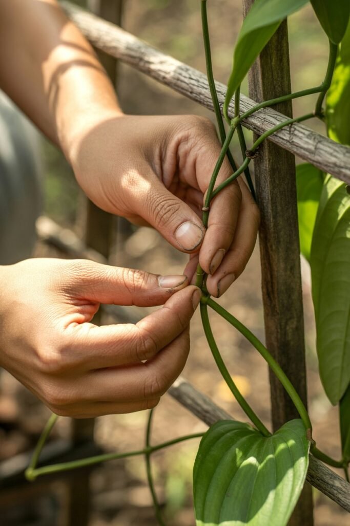 Vanilla is a climber, and giving it support is essential for growth and eventual flowering.