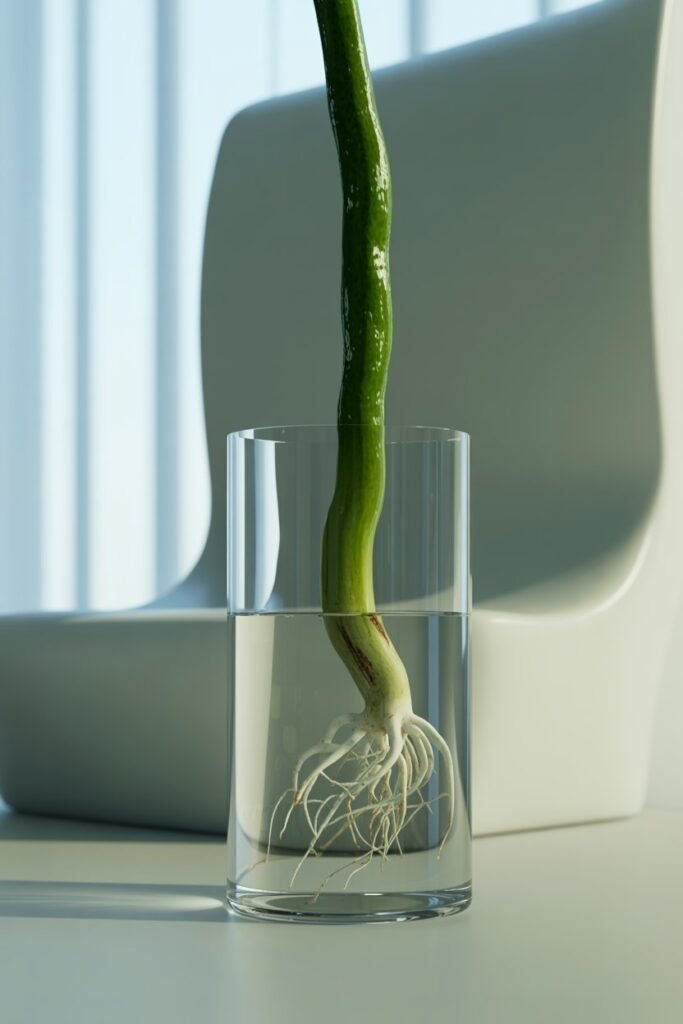 Instead of throwing it out, I placed the cutting into a tall glass jar filled with water and set it near a bright window. I didn’t expect much—but within a few weeks, delicate white roots began to stretch from the node. That tiny bit of growth felt like magic.