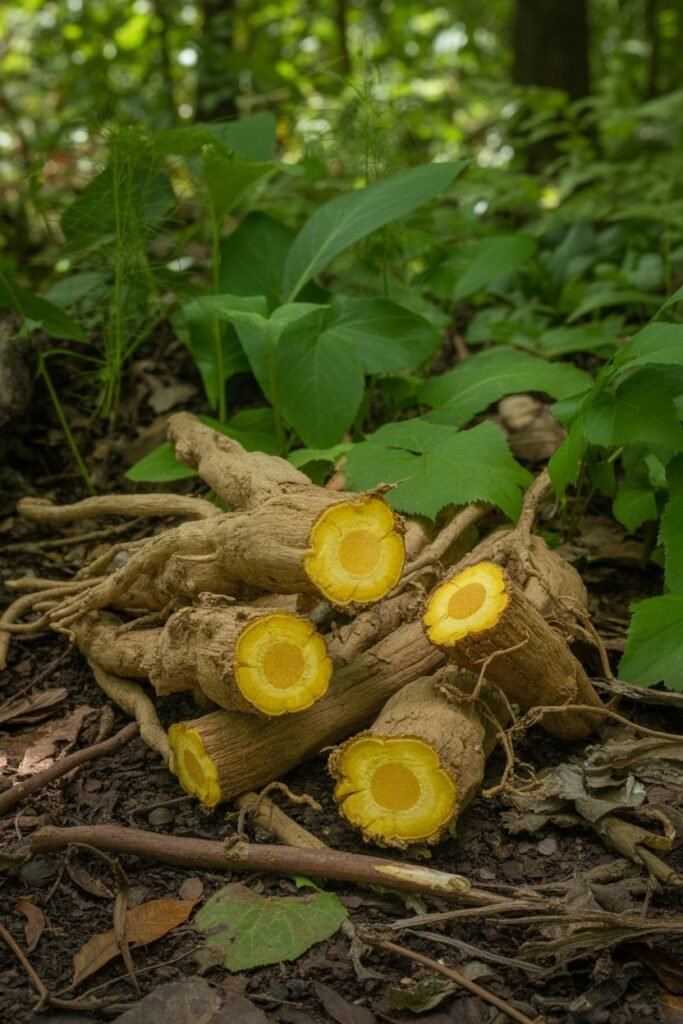 Goldenseal is a woodland medicinal herb known for its bright yellow root and powerful antimicrobial properties. Native to North American forests, it grows slowly and prefers shaded, undisturbed environments.
