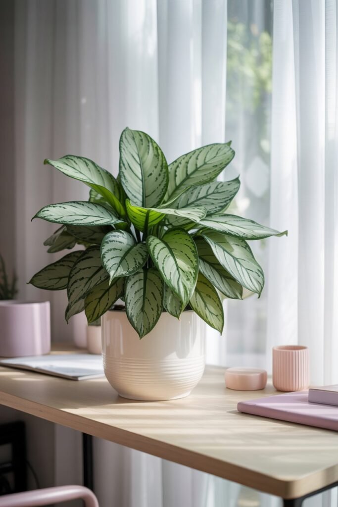 A Chinese Evergreen is like a quiet friend with a colorful personality. Its patterned leaves silver, green, and sometimes pink brighten shadowy spaces instantly.