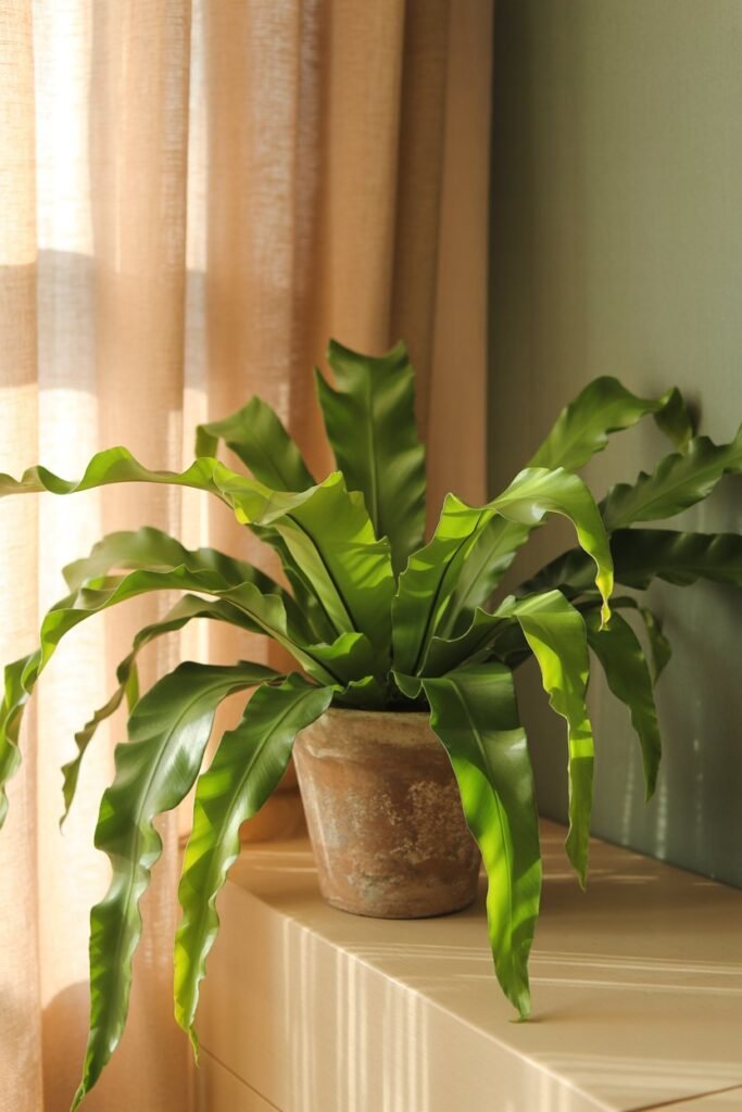 If you adore soft, sculptural greenery, the Bird’s Nest Fern is pure charm. Its wavy, bright green leaves look like they’re unfolding from the heart of a nest giving every corner a fresh, lush feeling.