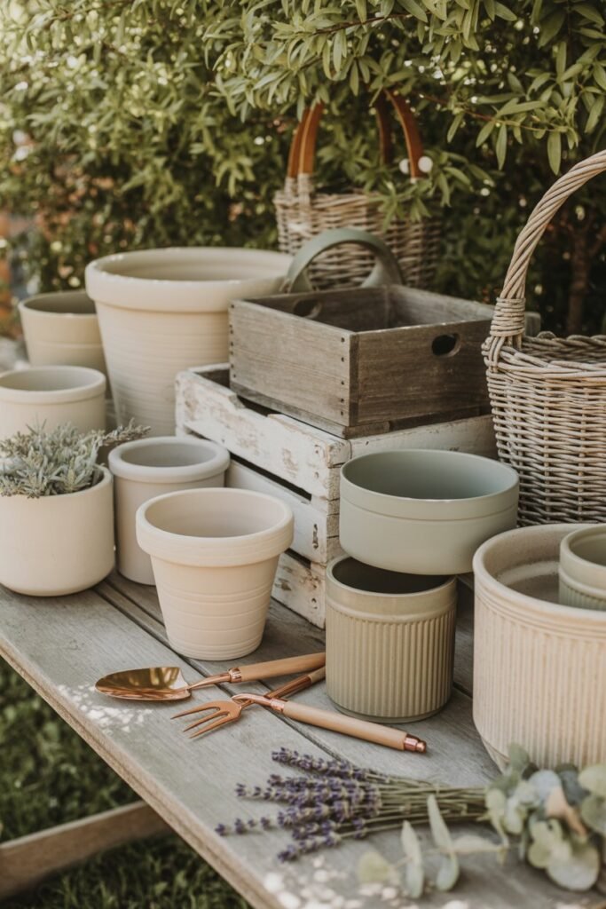 Lighter-colored pots brighten darker spaces visually, which makes the entire area feel more open.