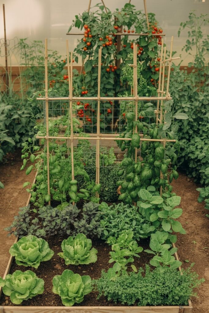 - Late season: Lettuce + herbs