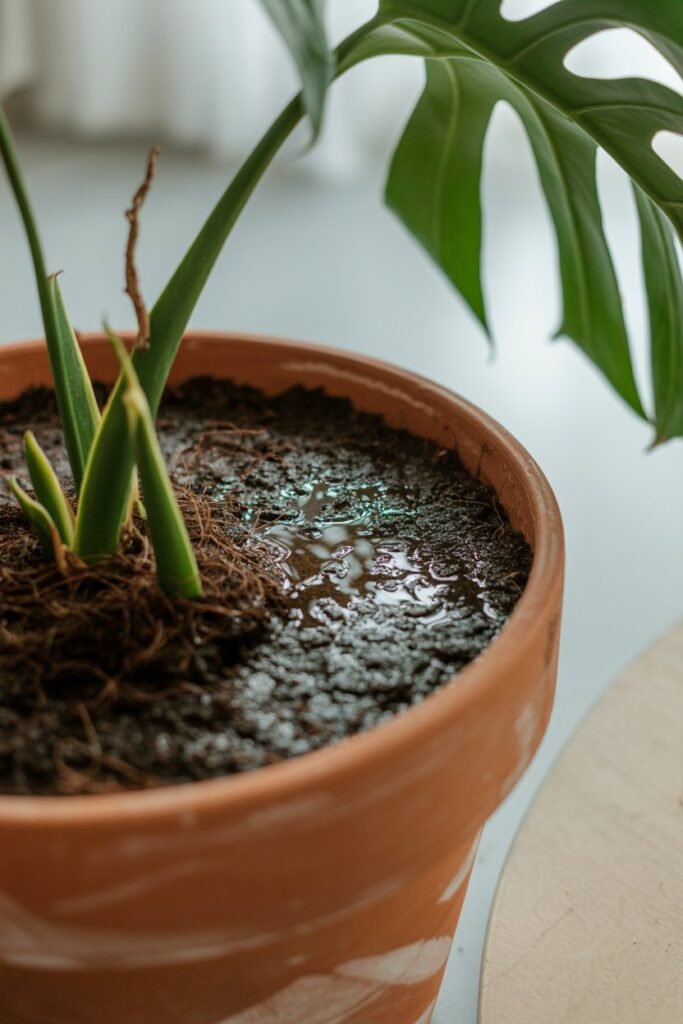 This prevents root rot, encourages oxygen flow, and helps the Monstera grow bigger roots which directly translate into bigger leaves.