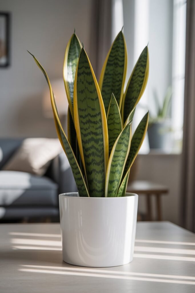 1. Snake Plant (Sansevieria trifasciata)