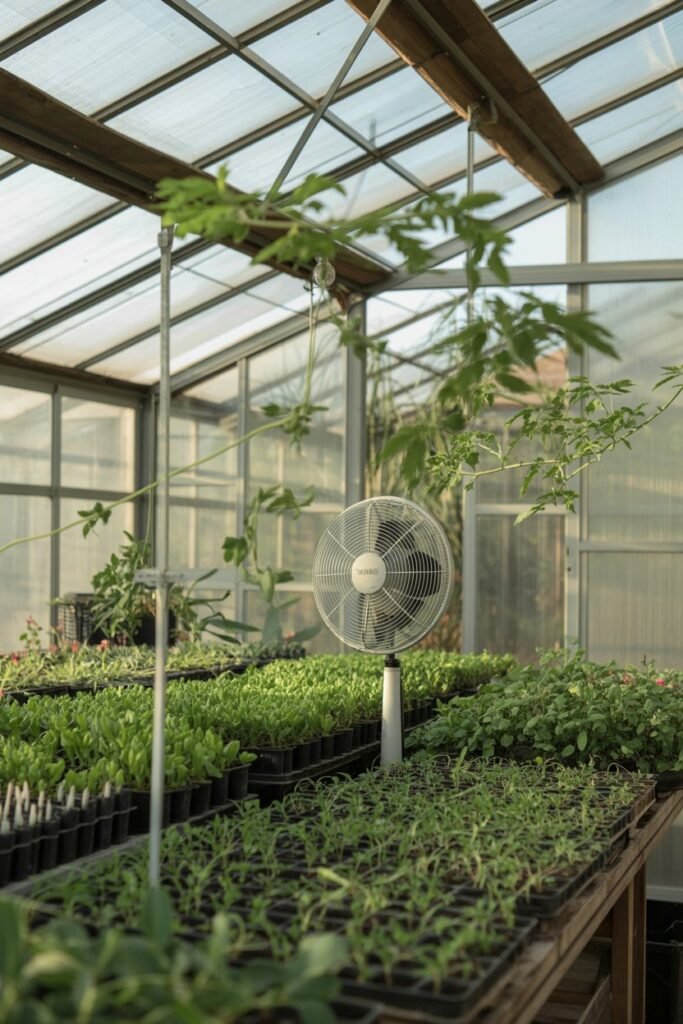 Without wind, plants don’t strengthen their stems naturally. Air circulation also helps regulate moisture on leaves.